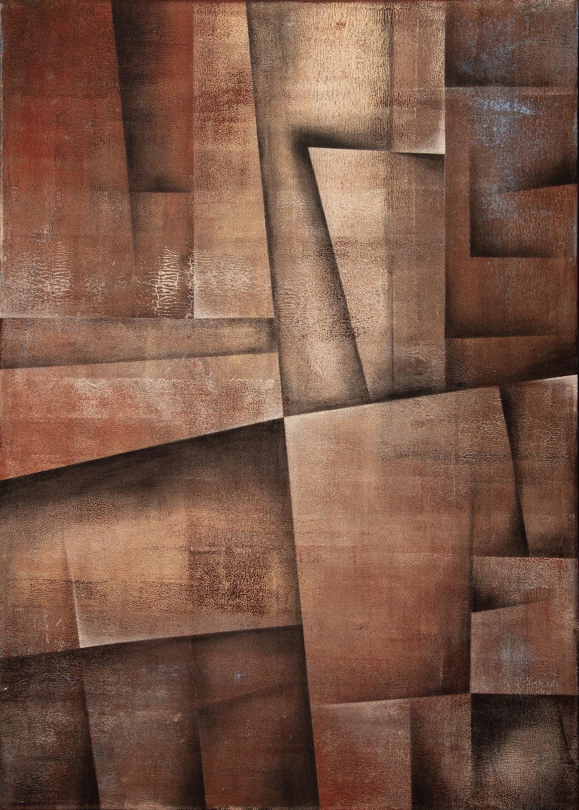 Nowoczesny obraz abstrakcyjny, namalowany na podobraziu malarskim o wymiarze 140 x 100 x 4 cm (wys. x szer. x gł.)