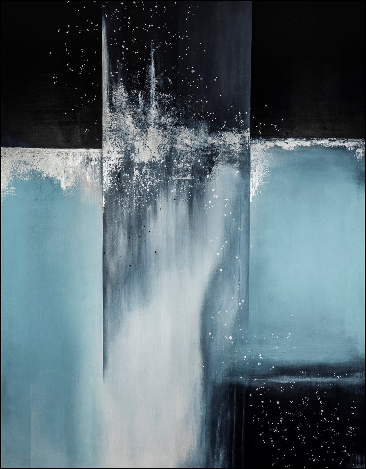 Podobrazie malarskie zostało wykonane przez polskiego producenta. *Użyte kolory: odcienie szarości, granatowa czerń, odcienie błękitu, biel, srebro.