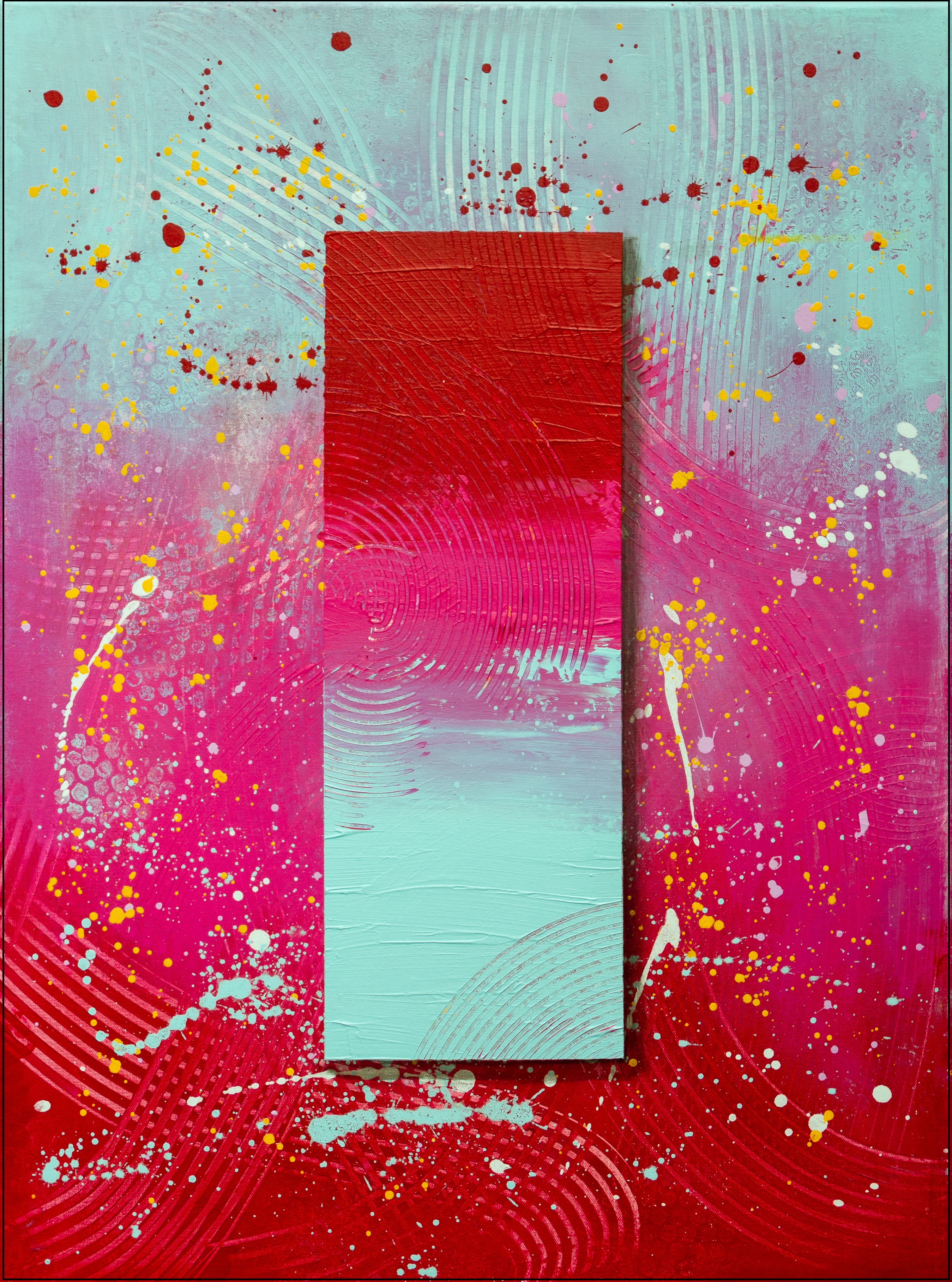 Nowoczesny obraz abstrakcyjny, namalowany na podobraziu malarskim o wymiarze 80 x 60 x 2 cm (wys. x szer. x gł.)