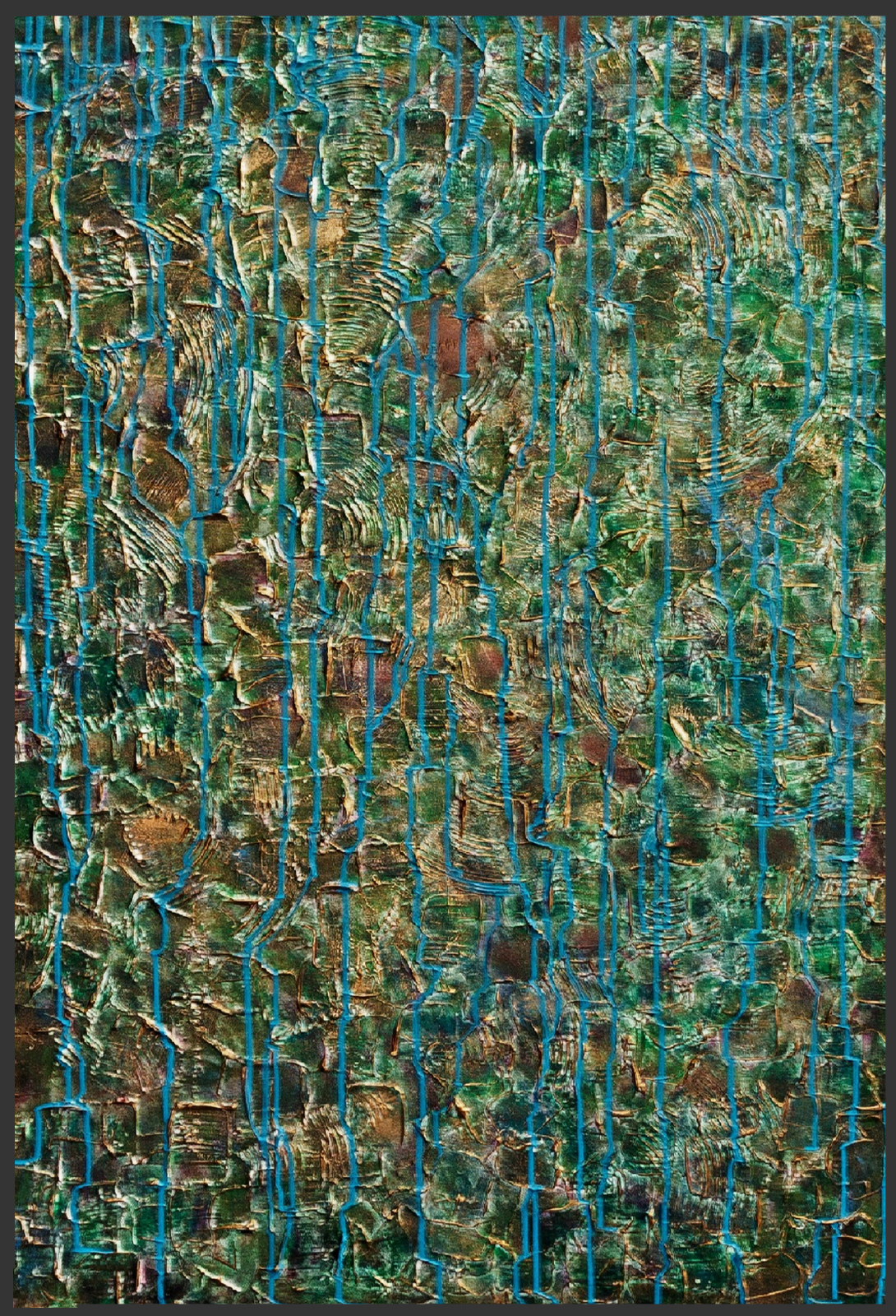 Nowoczesny obraz abstrakcyjny, namalowany na podobraziu malarskim o wymiarze 110 x 75 x 3,5 cm (wys. x szer. x gł.)