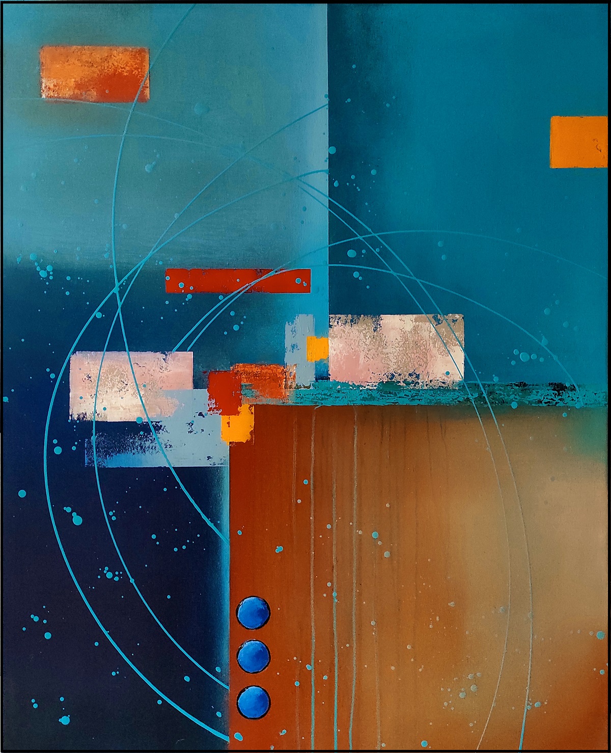 Nowoczesny obraz, namalowany na podobraziu malarskim o wymiarze 100 x 80 x 4 cm (wys. x szer. x gł.)