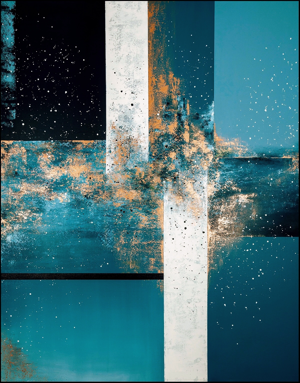 Podobrazie malarskie zostało wykonane przez polskiego producenta. *Użyte kolory: biel, odcienie błękitu, odcienie pruskiego niebieskiego, złoto antyczne, miedź.
